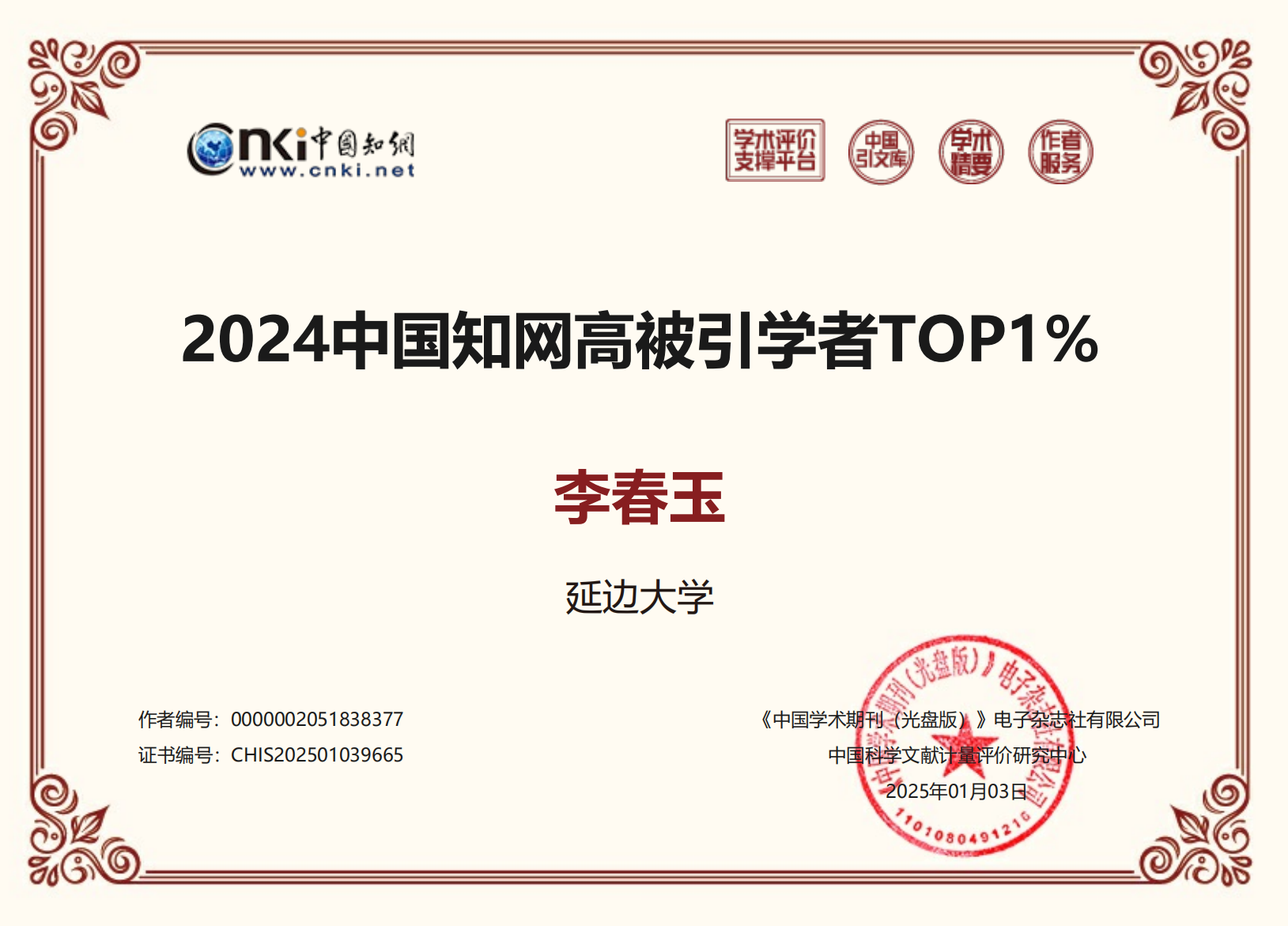 中国知网资源总库遴选各学科代表性论文,并为单篇代表作提供定性与定量评价数据,遴选各学科高被引论文,从多个维度为高被引论文提供分析。近日,对中国知网收录的近十年的论文数据进行统计,按PCSI、被引频次、下载频次的高低分别排出前1%的高影响力研究论文,筛选出护理学者Top1%有764人,Top5%有3284人。其中,365官网李春玉教授被评为“2024中国知网高被引学者TOP1%”。